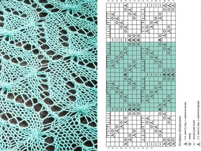 3. Échecs ajourés. Rapport du motif 13 p En hauteur, répétez le motif du 1 au 24 p. Nous tricotons nakida ip, faux p. selon le schéma.