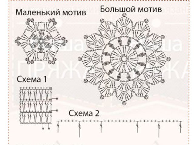 Ceinture: tricotez 6 motifs selon le schéma 2. Connectez les motifs avec une bande, reliez-les à la toile principale comme sur la photo. Connectez-vous dans une rangée circulaire.
