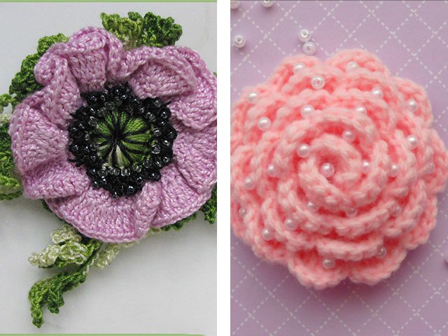 Lier belle fleurDessiner sur des diagrammes avec des images est très simple. Vous pouvez non seulement choisir la couleur désirée, mais également la fleur elle-même: lys, roses, camomille. De tels produits peuvent non seulement agir en tant que composition séparée, ils peuvent également être utilisés comme élément décoratif. Soit dit en passant, vous pouvez utiliser des perles pour le tricot pour la décoration ou des perles pour tricoter afin de créer des bijoux de créateurs uniques.