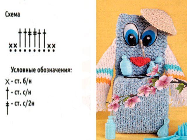 Nous allons connecter un merveilleux Moidodyra aiguilles à tricoter pour votre enfant! Vous aurez besoin d'un fil acrylique en couleurs: blanc, bleu, jaune, crochet, aiguilles à tricoter, feutre pour les yeux ou déjà prêt à l'emploi, boîte sous forme de cube et de fil.