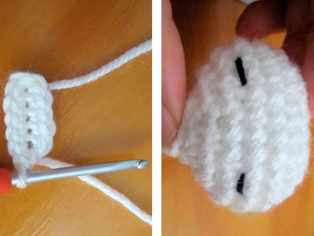 Attacher le museau - Prenez un fil plus fin et utilisez un petit crochet pour le rendre moins volumineux.