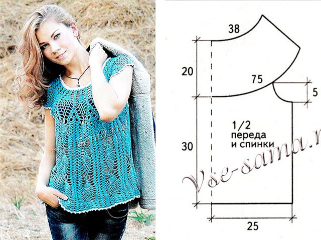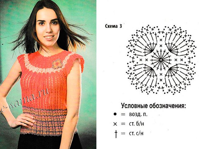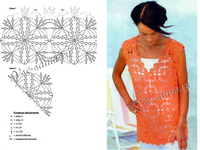 Cette saison, les hauts, les blouses, les t-shirts et les vestes au crochet ont repris leur place. Vous pouvez les trouver dans toutes les boutiques de mode avec des vêtements, mais il est préférable de nouer une telle chose vous-même. Pour ce faire, il existe de nombreuses master classes détaillées, tutoriels vidéo, descriptions étape par étape et schémas détaillés (C / X). Elles seront maîtrisées à la fois par les aiguilleuses expérimentées et par les débutantes.