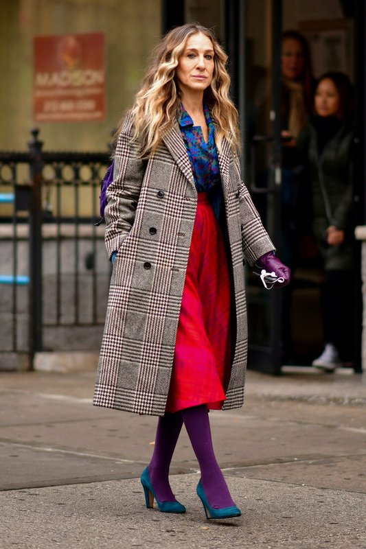 Un manteau midi à carreaux devrait être dans la garde-robe de chaque vraie fashionista. Et si vous le portez avec des collants colorés à la mode et des bateaux d'une teinte contrastante, l'attention des photographes de rue vous est fournie.