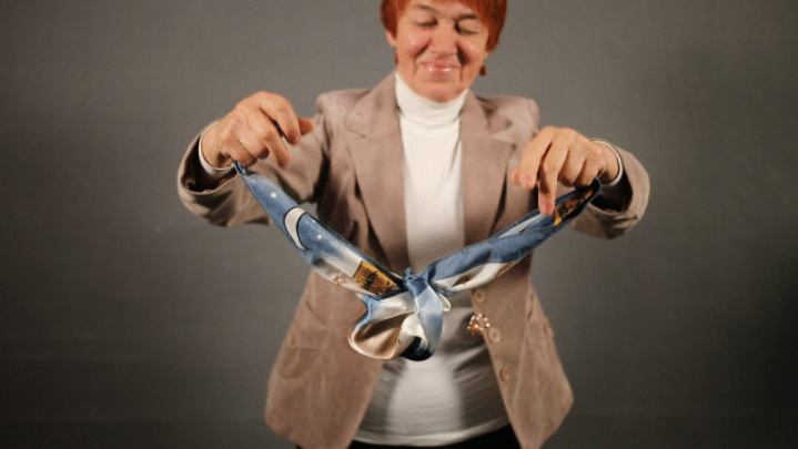 Pour travailler sur la technique, il est recommandé d'utiliser un petit foulard carré. Le matériau de l'accessoire peut être un tissu satiné ou en soie.