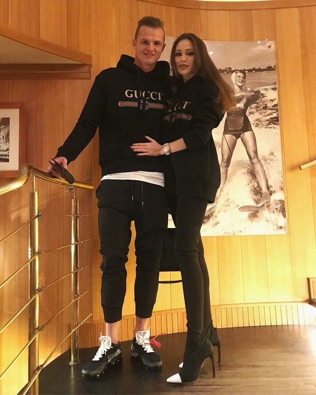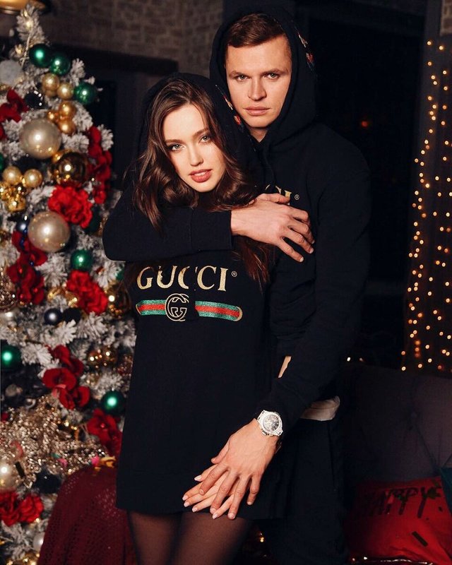 Ainsi, Anastasia et Dmitry sont clairement des fans de la marque Gucci. Les conjoints choisissent souvent des t-shirts, des sweats à capuche, des bonnets et des ceintures de cette marque. Dans le même temps, Nastya combine pour une raison quelconque un sweat-shirt avec d'élégantes bottines classiques. Oui, et maquillage de soirée avec le style d'un autre opéra.