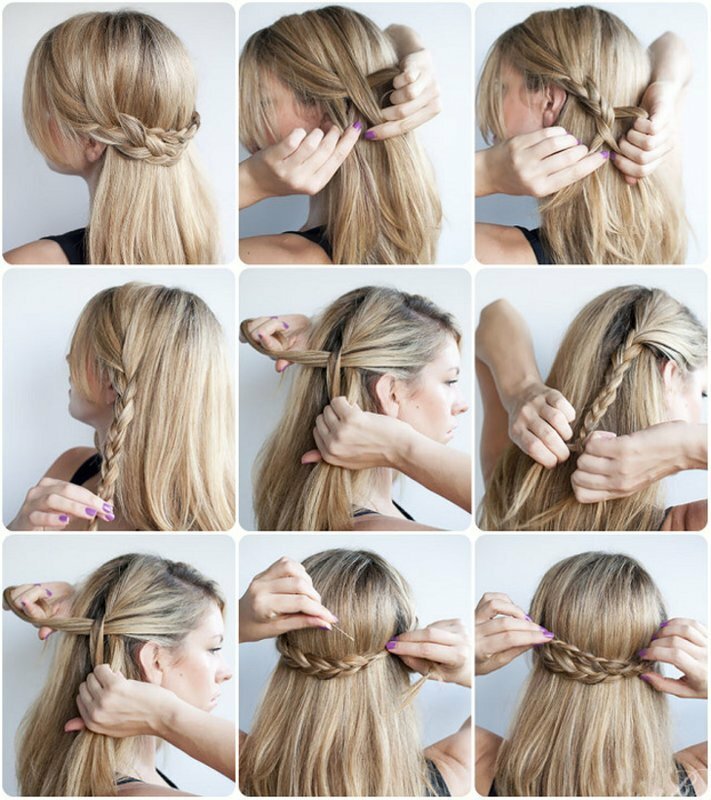 Coiffures avec des tresses - simple et facile à réaliser. Si vous suivez les instructions de la photo correctement, la coiffure ne prendra pas beaucoup de temps.