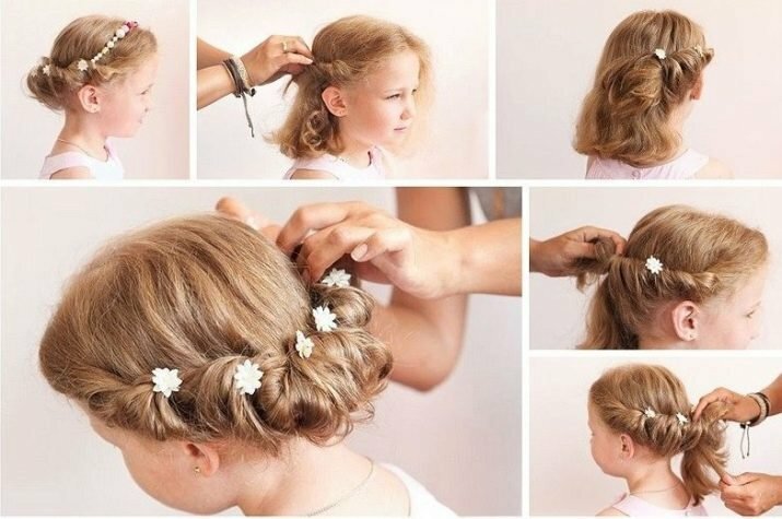 À la créationCoiffures personne n'aura de problème. La coiffure est faite en 5 minutes et cette image décorera n'importe quelle petite fille. Seuls la gomme et les crampons sont nécessaires.