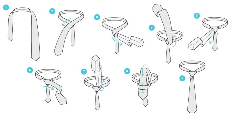 Ainsi, attacher des liens n'est rien compliqué. Les mouvements principaux sont simples et varient entre eux en fonction du nombre de révolutions. Avec ces instructions simples, vous pouvez facilement apprendre à nouer une cravate avec les nœuds les plus classiques.