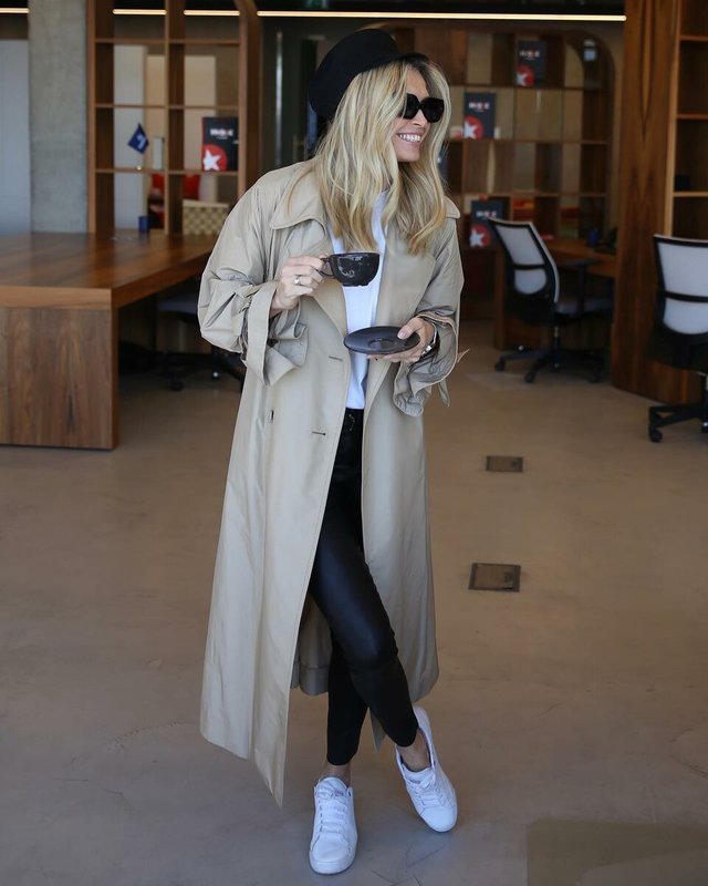 Si la seule raison pour laquelle vous n’avez toujours pas de trench-coat, c’est la pensée qu’il a l’air harmonieux que si vous portez des chaussures à talons hauts, nous serons heureux de vous rendre heureux. La cape s'adapte parfaitement à tout type de baskets, même aux tendances laides. Eh bien, avec des baskets blanches classiques et une paire parfaite.