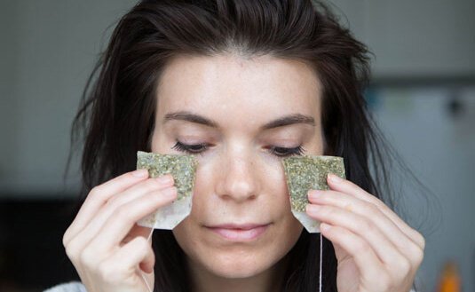 L'élimination de l'enflure avec les sachets de thé sera rapide et abordable. Les sacs brassés doivent être appliqués sur les paupières pendant 10 à 15 minutes. Si possible, vous pouvez créer un contraste: appliquez alternativement des sachets chauds et froids pendant 20-30 secondes.
