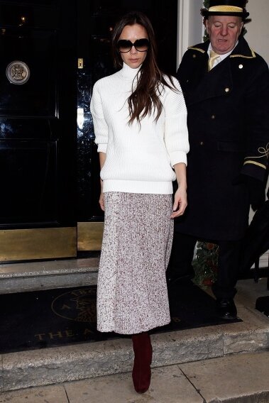 Si vous ne savez pas quoi porter, ne suivez pas les tendances et, en général, cherchez l'inspiration pour rafraîchir votre garde-robe, jetez un coup d'œil à Victoria. Elle n'est pas reconnue comme une icône du style, car chaque sortie est tellement laconique et réfléchie que des questions à propos des images se posent extrêmement rarement. Oui, elle a des ratés, mais ils sont plus souvent associés à des données externes qu’à la mode. Par exemple, elle est critiquée pour ses genoux ouverts, car elle est excessivement mince.