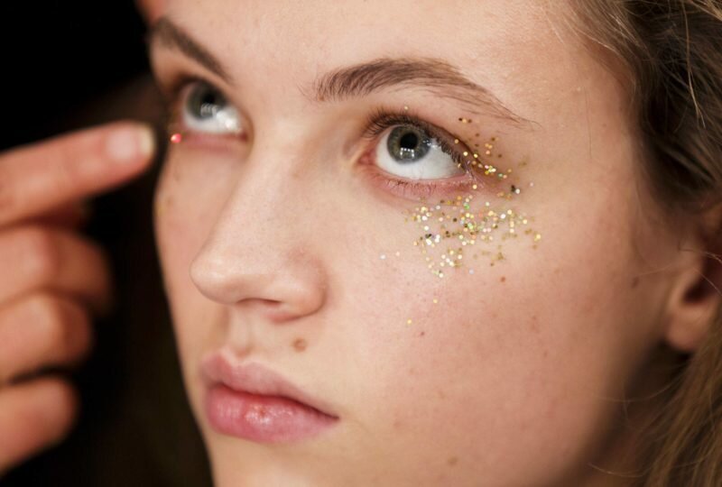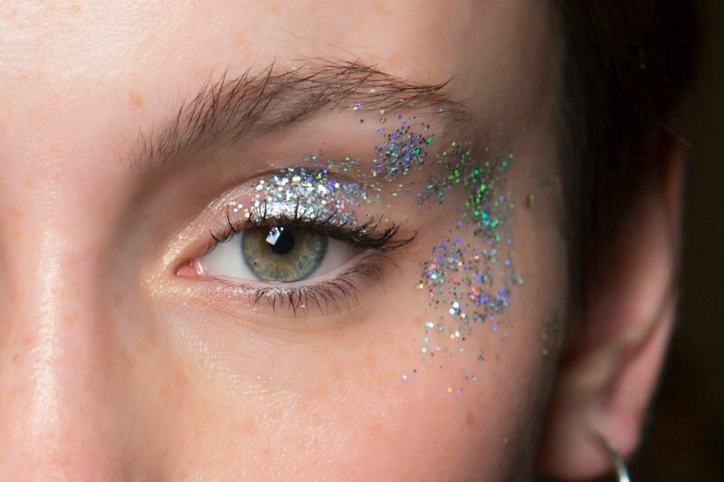 Utilisez activement des paillettes et des reflets lorsque la création du maquillage n'a commencé qu'à la mi-2018. Dans le même temps, le maquillage avec l'utilisation de paillettes ne se limitait pas aux ombres. Maintenant, les paillettes sont appliquées sur différentes parties du visage: