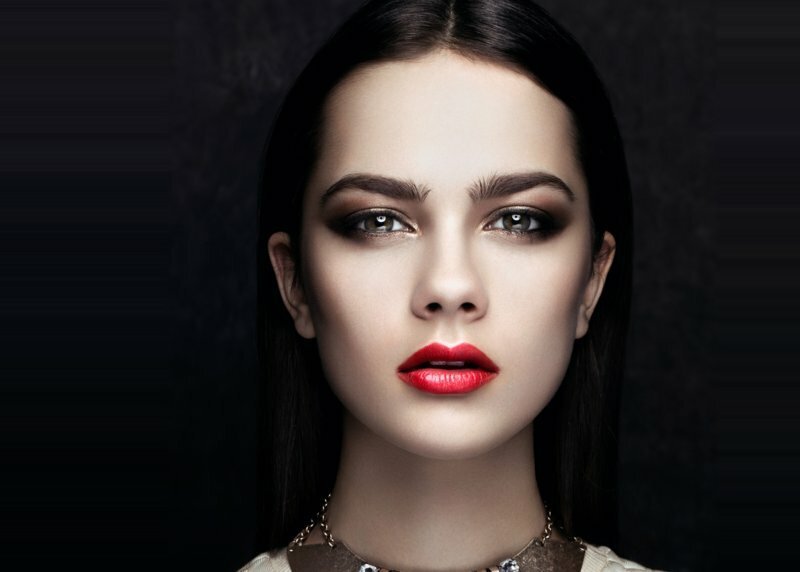 Lorsqu’on utilise du rouge à lèvres coloré saturé pour les lèvres, les maquilleurs conseillent de se concentrer sur les sourcils plutôt que sur les yeux et de souligner les pommettes avec la technique de contour «masculin».