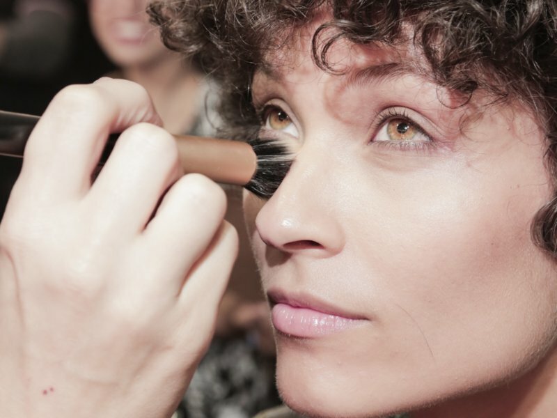 - Une poudre friable légèrement opaque est placée sur le visage à l’aide d’une large brosse douce;