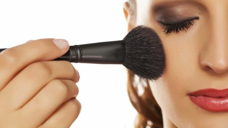 - Mélangez la poudre avec une grosse brosse moelleuse. Sa couleur est bronze, prenez le blush un ton plus foncé;