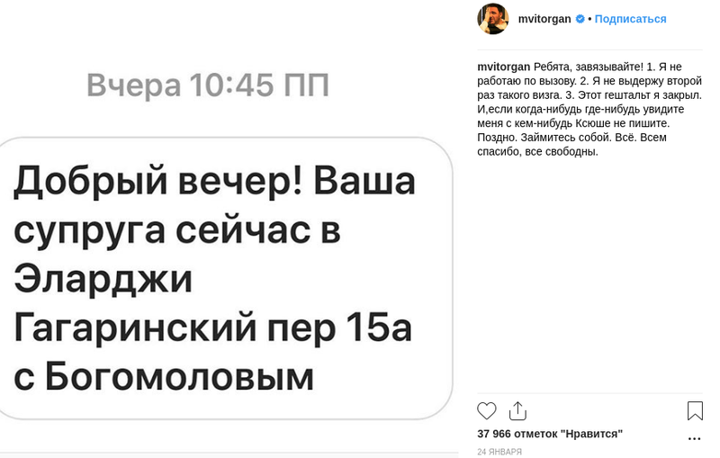 Après la publication sur Instagram de Vitorgan, dans laquelle il a demandé d'arrêter de lui envoyer des messages sur l'endroit où se trouvait Xenia, est apparu.