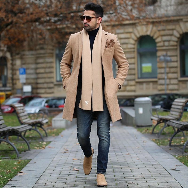 Pour les hommes qui préfèrent un code vestimentaire plus audacieux Les tricots longs sont parfaits. Ce modèle peut être porté avec une veste et une doudoune. Certains hommes supposent à tort qu'un long motif tricoté ne peut pas être combiné avec un manteau. Cependant, avec la bonne combinaison de détails et de solutions de couleurs, une telle image est très audacieuse et élégante.