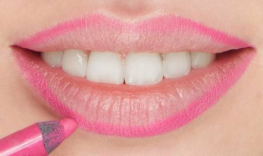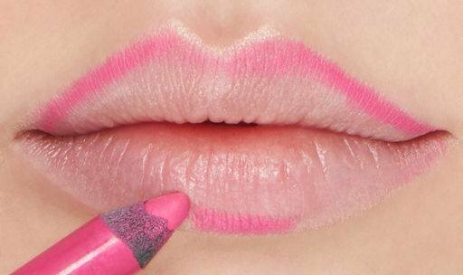 - Crayon Contour. Pour une augmentation visuelle des lèvres, vous pouvez dessiner les lèvres, légèrement en saillie avec un crayon, sur les contours;