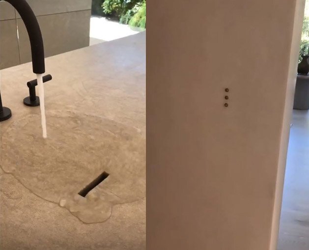 La cuisine et la salle de bain du manoir ont particulièrement attiré l'attention des fans. La première chose qui a intéressé tout le monde était des coquilles inhabituelles qui n'avaient pas d'évier. Kim a expliqué qu'il s'agissait d'un design unique créé par son mari. En fait, les plans de travail sont légèrement inclinés et un trou spécial apparaît à la surface.