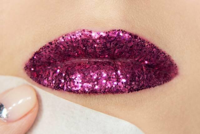 Étape 2: ajoutez des paillettes. Sur le rouge à lèvres, ajoutez des paillettes spéciales. Il est recommandé de choisir des brillants de taille moyenne. Les plus petits vont ressembler au rouge à lèvres normal, tandis que les plus gros gâteront tout simplement le maquillage.