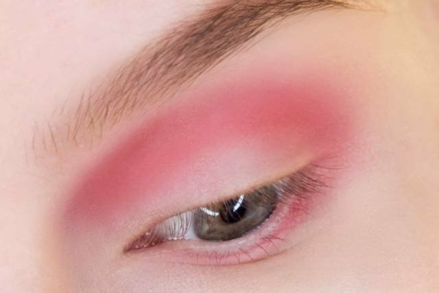 Étape 2: ajoutez un accent vibrant. Dans la palette, sélectionnez des ombres mates avec une nuance rouge ou rose. Nous appliquons la "boucle" dans la technique: le long du pli de l'oeil, vers le haut sur la paupière fixe, tracez le coin extérieur.