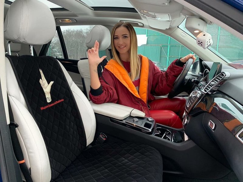 Ksyusha se sent bien au volant de la toute nouvelle Gelendvagen, pour laquelle elle a d'ailleurs acquis des chiffres «cools», sans doute pour 230 000 roubles.