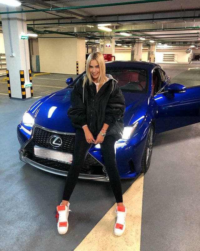 La jeune fille est souvent photographiée sur le fond de sa voiture de luxe, qui aurait été présentée par le célèbre petit ami.