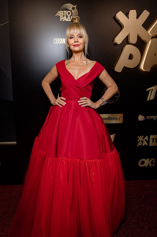 Valeria a choisi une coiffure très originale pour la soirée et n'a pas perdu. Dans l'ensemble avec de longues boucles d'oreilles, l'image était parfaite.