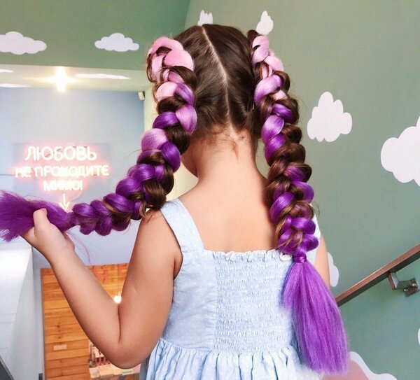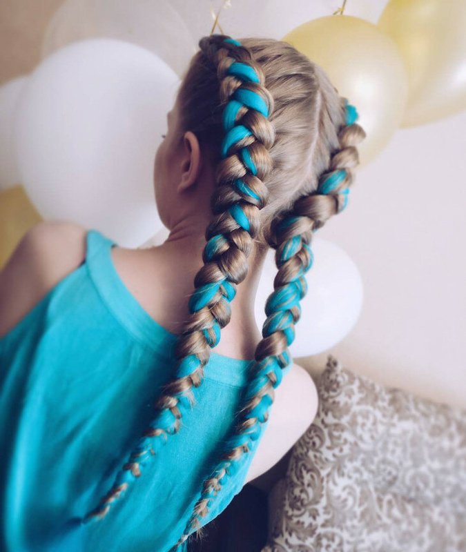 La coiffure la plus populaire avec Kanekalon pour les enfants et les adolescents - 2 épillets. Vous pouvez les tisser, à la fois par la méthode classique et à l'envers. Les deux options ont l'air élégant et spectaculaire.