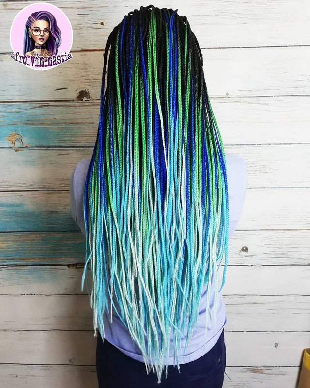 L'accessoire le plus approprié pour les tresses - Kanekalon. C'est une fibre artificielle, très légère et à séchage rapide, ce qui est important. Imaginez à quel point ce sera dur à la tête si vous tissez des fils multicolores ordinaires en tresses. Ils ne sont pas faciles en eux-mêmes, et si vous êtes mouillé, il y aura quelques kilos supplémentaires.