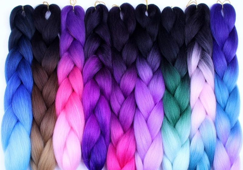 Pour cette option, pas un kanekalon simple, mais un ombre est parfait. Il est préférable de prendre le haut pour assortir vos cheveux, et la partie inférieure peut être de n'importe quelle couleur.