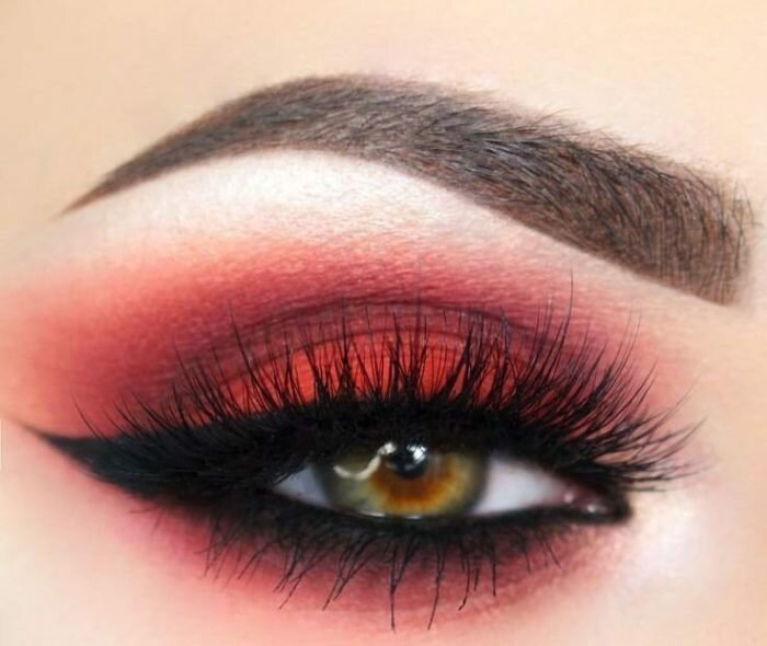Ombres rouges.Cette couleur mettra en valeur le look très favorablement, cependant, elle doit être utilisée en combinaison avec d’autres nuances - cuivre ou métallisées, car vous pourriez obtenir l’effet d’une fatigue visuelle.