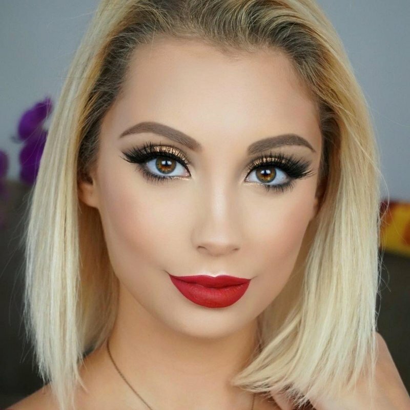 En maquillage de soirée pour les blondes, l'accent est mis sur les yeux ou les lèvres.