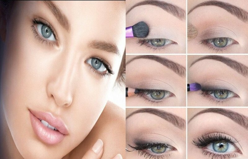 Maquillage de soirée pour les blondes aux yeux gris-bleu, il est généralement effectué selon la technique Smokey Ice. Dans ce cas, vous pouvez utiliser non seulement le noir classique, mais également les ombres fumées de rose, de bleu et de gris.