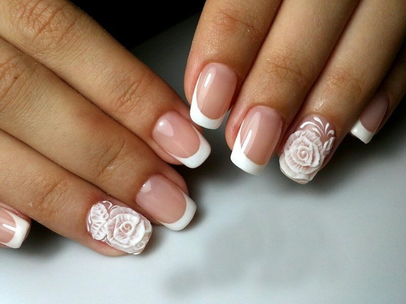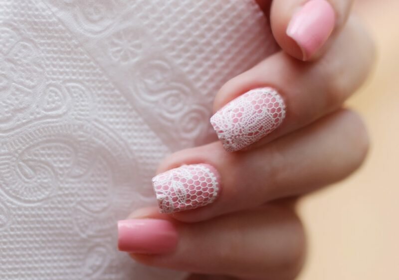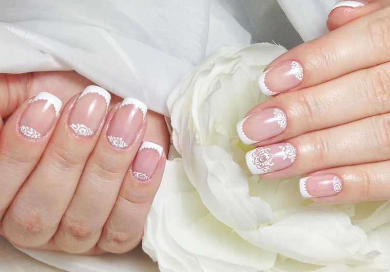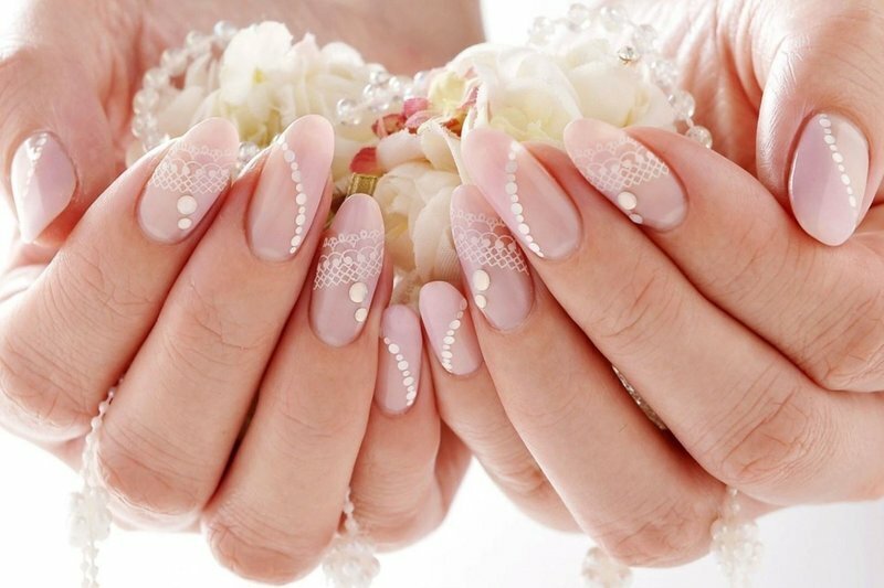 Manucure de mariage avec de la dentelle est effectuée de plusieurs manières: