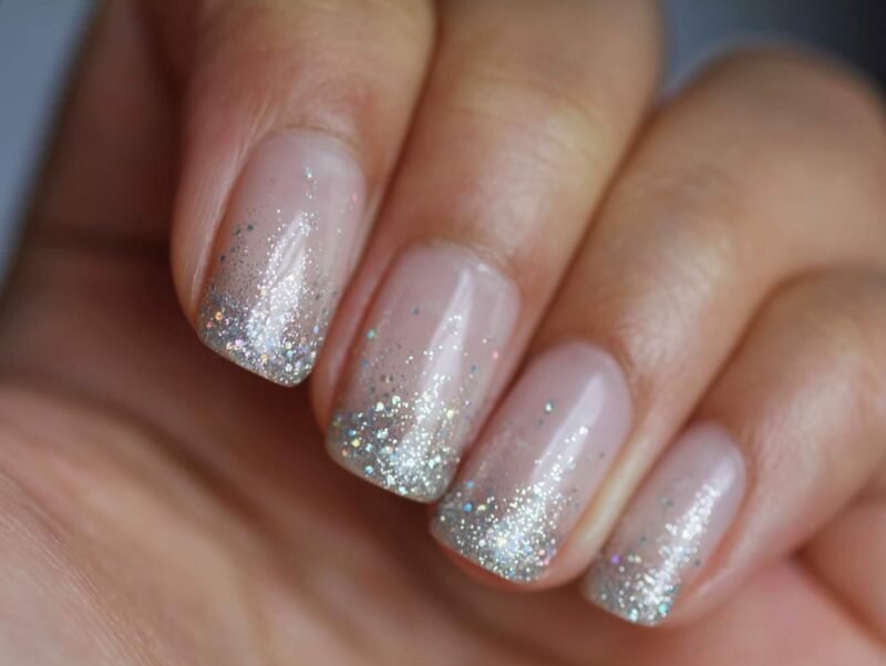 La manucure la plus branchée comprend l’utilisation harmonieuse de strass et de paillettes. Ils sont répartis progressivement sur les ongles pour un effet de dégradé.