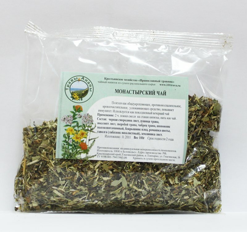 La principale caractéristique du thé du monastère est sa composition unique. Toutes les herbes de la collection doivent être cultivées hors de la civilisation sur le territoire du monastère. La recette de boisson a été inventée par un moine curatif et transmise de génération en génération.