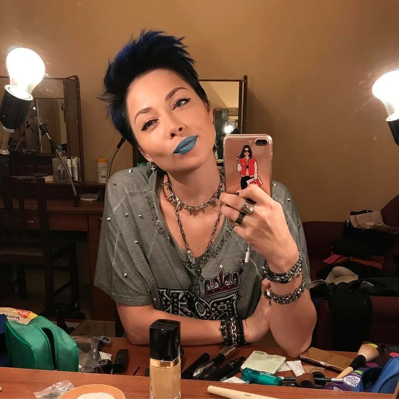 Ensuite, les brins bleus sont passés au violet. Non, ce n'étaient pas des tresses, Nastasya a vraiment peint des boucles, dont elle a parlé aux abonnés sur son blog.