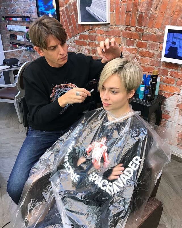 Eh bien, quand les cheveux sont une courte expérience de la couleur - une tâche simple. En quelques heures à peine, un ami styliste chevronné, Vladislav Lisovets, a transformé Nastasya en blonde.