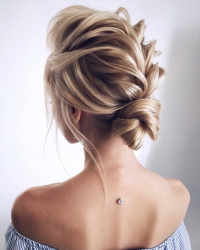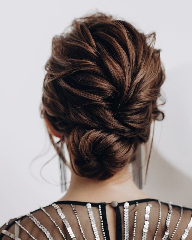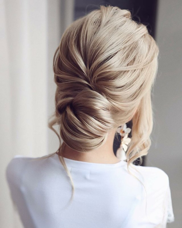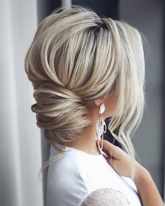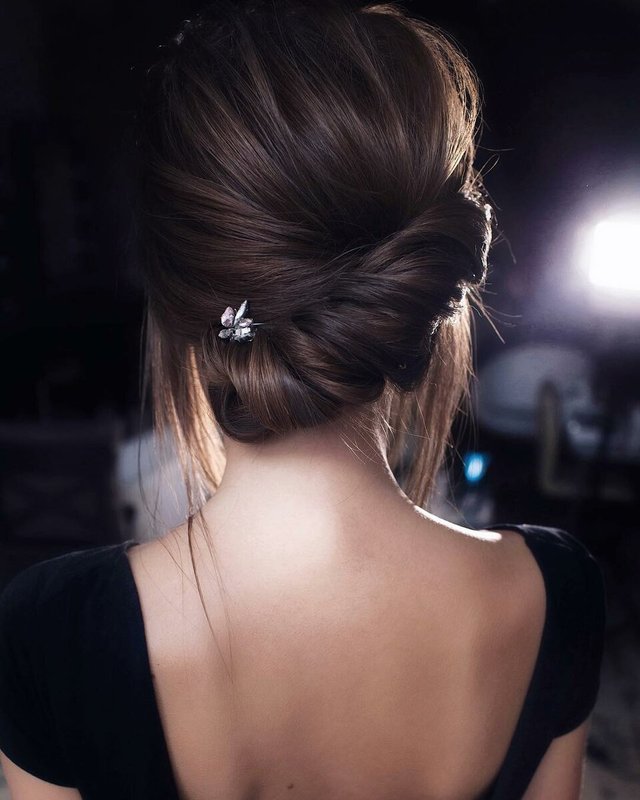 Si vous avez choisi une robe de mariée avec un «bateau» découpé, des bretelles ou un dos ouvert, il vous suffit de ramasser les cheveux. Sinon, personne ne verra toute cette beauté. Il existe deux options principales pour une coiffure à la mode: un chignon bas et un chignon haut.