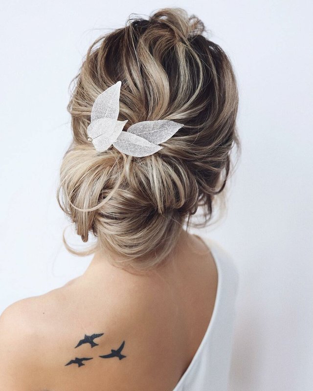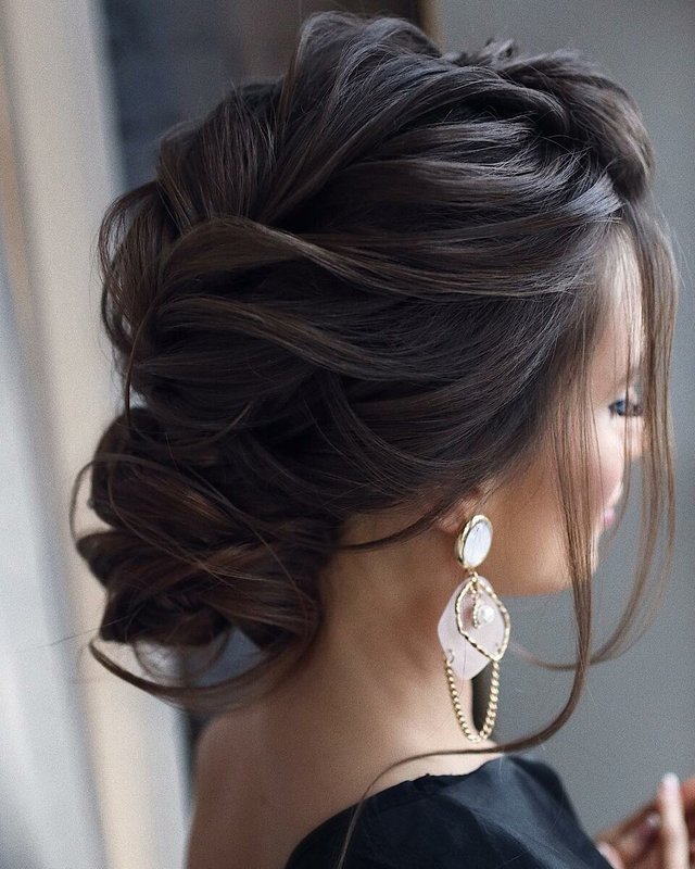 En complément, diverses épingles à cheveux, pétoncles, couronnes et diadèmes sont utilisés. Si vous n'êtes pas un partisan des accessoires pour cheveux, vous pouvez ajouter de grandes boucles d'oreilles à un petit pain. La tendance est aux modèles longs avec des pierres et des perles de différentes couleurs.