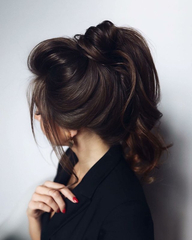 Aujourd'hui, la tendance est aux coiffures légères et aérées. En règle générale, les faisceaux élevés sont collectés à partir de boucles préalablement enroulées sur un fer à friser de diamètre moyen. Des mèches sont libérées sur le visage, près des oreilles et derrière, pour donner à l'image une légère négligence.