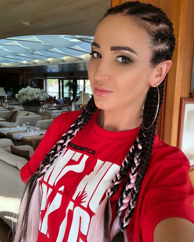 Olga, en tant que personne qui ne se contente pas de suivre les tendances, mais de les créer, ne pouvait pas essayer une image élégante avec des tresses et du kanekalon, que les maîtres lui ont tissés dans les cheveux.