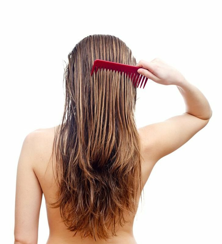 - Répartir uniformément l'huile de noix de coco dans les cheveux, sans laisser de zones sèches;