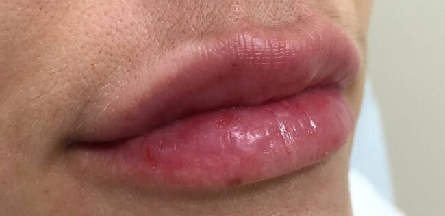 - Injection superficielle. Une profondeur d'insertion de gel insuffisante peut provoquer des joints d'étanchéité. De plus, la cause peut être la structure particulière des lèvres qui n’a pas permis à l’acide de descendre à une profondeur suffisante;