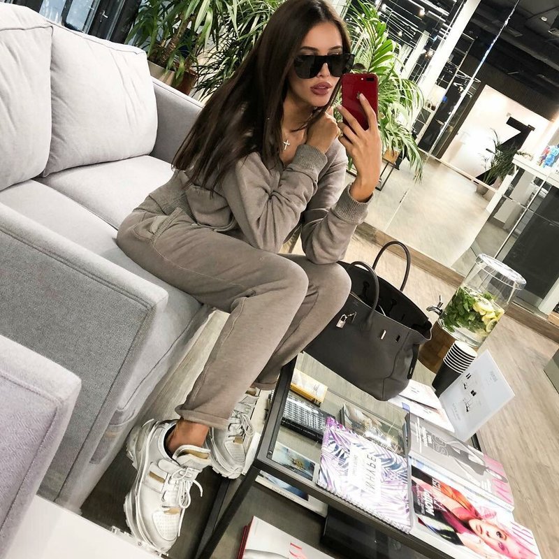Anastasia Reshetova combine des baskets volumineuses avec un survêtement - une option très pratique, surtout dans sa position intéressante, que les fans disent.