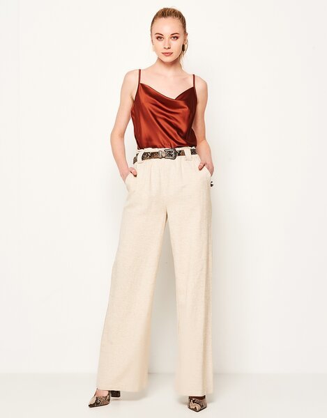 - Les pantalons en lin sont des vêtements assez festifs si vous les portez avec un haut ou une veste intéressants. Et les vêtements qui leur conviennent le mieux sont des sandales à plateforme ou à lanières basses. Des chaussures et des tongs sont également disponibles.