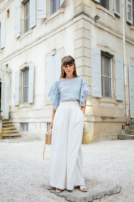 Pour avoir l’air élégant, il n’est pas nécessaire de porter une robe de soirée. Aujourd'hui, beaucoup de femmes préfèrent les pantalons. Et le lin associé à un chemisier à volants ou à manches lanternes créera un ensemble totalement harmonieux.