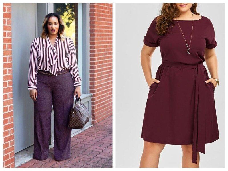N'oubliez pas le Bourgogne royal! Les tons de vin, tels que Marsala, continuent à occuper une position de leader. De plus, ils rendent visuellement la silhouette plus fine.