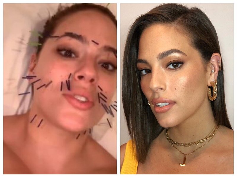 Ainsi, l'un des modèles courbes les plus populaires Ashley Graham ne cache pas qu'elle a soulevé son visage et l'a rendu plus profilée. Elle a posté ces photos sur son blog Instagram, alors ce n'est même pas un secret.